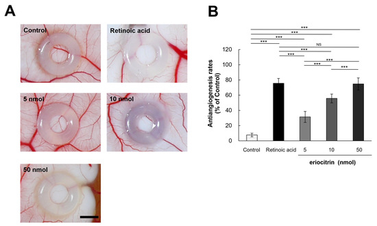 3.7. Inhibitory Effect of Eriocitrin on Angiogenesis in CAM