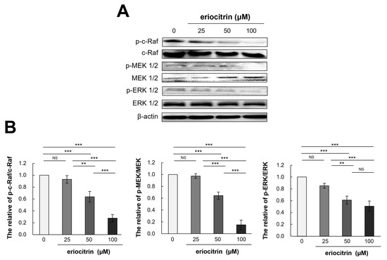3.8. Effects of Eriocitrin on Raf/MEK/ERK Pathways