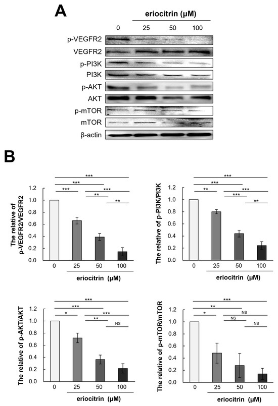APA StyleBaek, J.-Y., Kwak, J.-E., & Ahn, M.-R. (2024). Eriocitrin Inhibits Angiogenesis by Targeting VEGFR2-Mediated PI3K/AKT/mTOR Signaling Pathways. Nutrients, 16(7), 1091. https://doi.org/10.3390/nu16071091