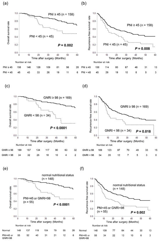 APA StyleTsukagoshi, M., Araki, K., Igarashi, T., Ishii, N., Kawai, S., Hagiwara, K., Hoshino, K., Seki, T., Okuyama, T., Fukushima, R., Harimoto, N., & Shirabe, K. (2024). Lower Geriatric Nutritional Risk Index and Prognostic Nutritional Index Predict Postoperative Prognosis in Patients with Hepatocellular Carcinoma. Nutrients, 16(7), 940. https://doi.org/10.3390/nu16070940