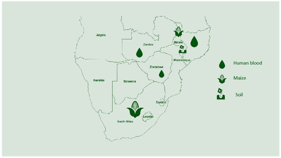 Selenium was officially recognized worldwide to be of nutritional value in 1957 due to its vital role in growth, fertility, and antibody production in animals [1,2]. Quantities of one or more selenoproteins (glutathione peroxidase and selenoproteins) are used as a measure of selenium status in livestock and humans, with plants being the main source of selenium for both livestock and humans [3,4]. Plants take in selenium from the soil at an optimum pH, mostly alkaline and in the form of inorganic compounds that easily dissolve in water. Selenium present in the soil is transported into the plant by sulfate transporters present in the plasma membrane of root cells [3]. Selenium exists in many food and plant products, naturally as a trace element and is also added as a supplement; the two main forms in which selenium exists are inorganic (selenate and selenite) and organic (selenomethionine and selenocysteine). In general, Southern Africa has been known to have very low concentrations of selenium in plants, leading to deficiencies in humans and livestock [5,6]. However, information on the selenium status of animals, soil, plants, feed, and human populations of Southern African countries is limited.