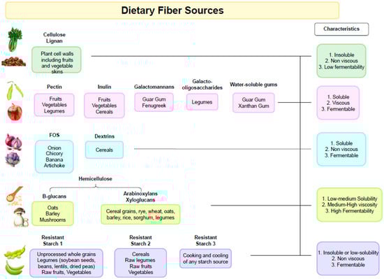 DFs can be categorized according to chemical composition, dietary origin, and physicochemical properties such as water solubility, viscosity, and fermentability [16].