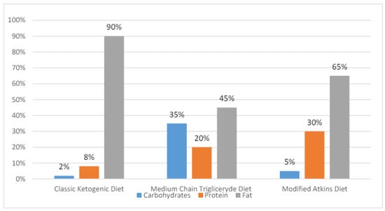 The classic KD is a high-fat, adequate or low-protein, and low-carbohydrate diet regime. The lipid-to-nonlipid (total protein and carbohydrate) weight ratio, known as the ketogenic proportion, is usually determined as 4:1, 3:1, or 2:1. This means that for every 4, 3 or 2 g of fat overall, there is 1 g of proteins and carbohydrates. The most desired in clinical conditions is the 4:1 proportion, providing 80% of the total energy from fat, primarily long-chain triglycerides, 15% from proteins, and 5% from carbohydrates. Long-chain triglycerides are then metabolized to shorter particles, i.e., medium-chain fatty acids. For infants and adolescents, who are still developing, the optimum proportion seems to be 3:1. Importantly, fats in the KD should be well balanced in terms of saturated, mono- and polyunsaturated fatty acids, while proteins are kept to the minimum requirements for growth. The higher the proportion, the more restrictive and theoretically more effective the diet is. Furthermore, the eating plan drastically reduces the intake of processed, chemically treated foods and focuses on fresh, nutrient-dense meals including meat, fish, vegetables, and healthy oils. Protein from lean meat, fish, poultry, and cold cuts is consumed in moderation. The low-carbohydrate vegetables and fruits include spinach, broccoli, cauliflowers, cabbage, cucumbers, peppers, tomatoes, leeks, radishes, green lettuce, grapefruits, apples, tangerines, oranges, strawberries, and avocados. Olive oil, butter, mayonnaise, as well as fatty meat and dairy are the main sources of lipids. Because such a diet is deficient in some nutrients, patients should be provided supplements of calcium, vitamin D, iron, folic acid, zinc, selenium, and copper [