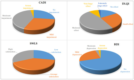 Figure 1 illustrates the results of the CADI, DLQI, SWLS, and BDI measurements.