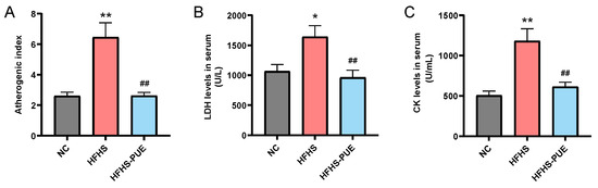 3.2. PUE Decreased the Cardiovascular Damage Indicators in HFHS Diet Rats