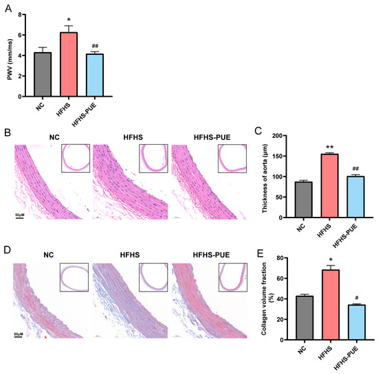3.4. PUE Ameliorated Arterial Stiffness in HFHS Diet Rats