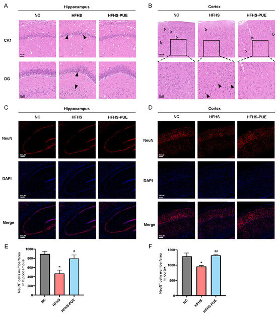 3.5. PUE Alleviated Neuronal Damage in HFHS Diet Rats