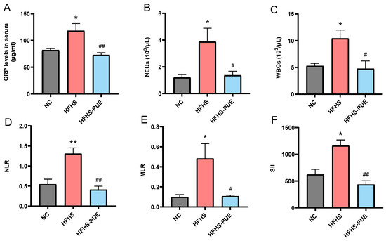 3.6. PUE Reduced the Systemic Inflammatory Indices in HFHS Diet Rats