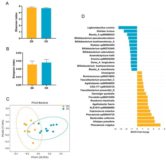 3.2. Profiling of Gut Metagenome in ZD and CK Group