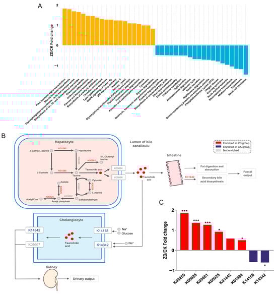3.4. KEGG Functional Profiles of the Gut Microbiome and Differential Functions between the ZD and CK Group