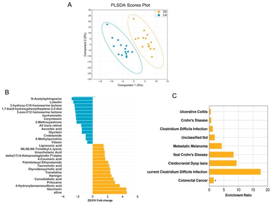 3.6. Profile of Gut Metabolome and Differential Metabolites between the ZD and CK Groups