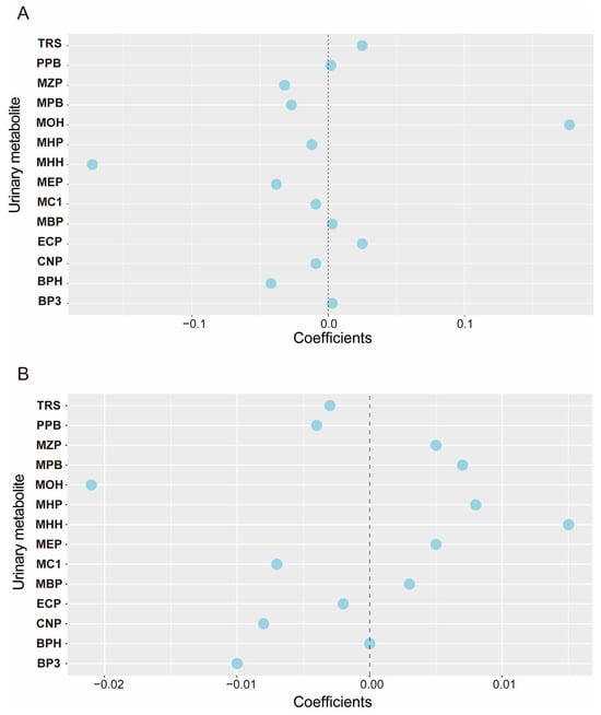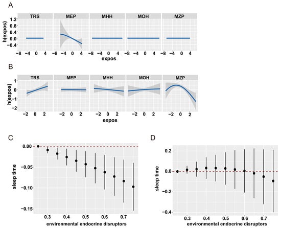 3.3. Correlation between Urinary EDC Metabolites and Sleep Duration
