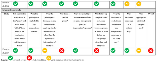 Risk of bias of eligible observational and interventional studies [14,22,25,26,38,39,40,41,42,43].