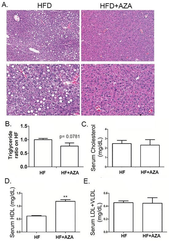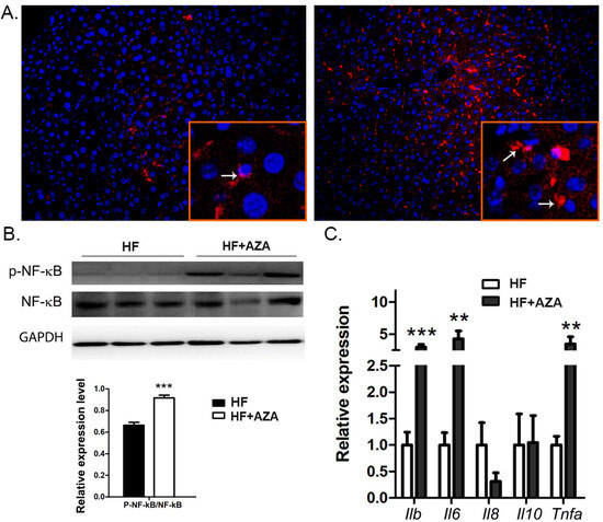 3.4. The AZA Treatment Enhanced Inflammation in the Offspring’s Liver