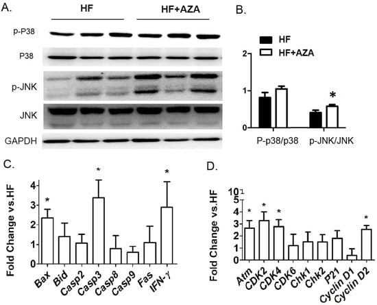3.3. The AZA Treatment Activated Hepatic P-38 and JNK Signaling, Associated with Expression Changes in Genes Involved in Cell Survival and Proliferation