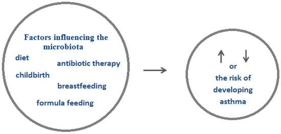 It is worth noting that the formation of a microflora is a gradual phenomenon. It is therefore possible to influence this development through an appropriate diet or/and probiotics [45,46,47,48]. A complete understanding of the gut–lung axis [49,50,51] may be crucial in the future management of asthma, although the mechanism by which these two systems may influence each other is not yet well understood. It seems likely that inflammation initiated in the intestines may result in inflammation in the lungs due to the destructive effects of an overstimulated immune system.