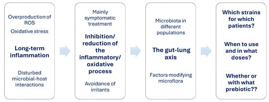 Based on the published studies, it can be concluded that there is a potential link between inflammation, dysbiosis, and oxidative stress in asthma (Figure 1).