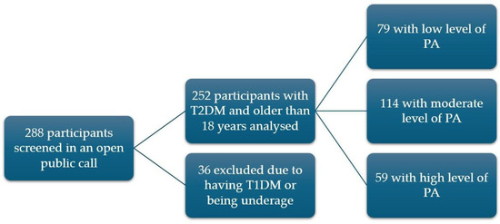- Martin, C.G.; Pomares, M.L.; Muratore, C.M.; Avila, P.J.; Apoloni, S.B.; Rodríguez, M.; Gonzalez, C.D. Level of Physical Activity and Barriers to Exercise in Adults with Type 2 Diabetes. AIMS Public Health 2021, 8, 229–239. [Google Scholar] [CrossRef] [PubMed]