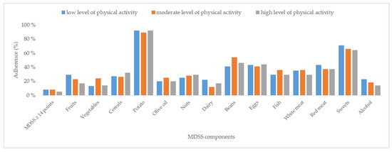 3.3. Mediterranean Diet Adherence in Relation to Physical Activity Levels
