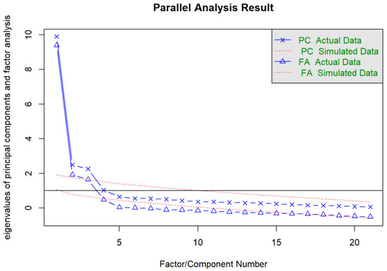 - Lim, S.; Jahng, S. Determining the number of factors using parallel analysis and its recent variants. Psychol. Methods 2019, 24, 452–467. [Google Scholar] [CrossRef] [PubMed]
