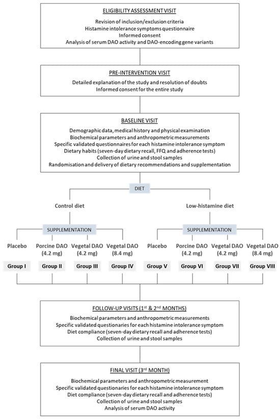 - A prospective, unicentric, double-blind, randomized, placebo-controlled clinical trial, involving 400 patients with histamine intolerance, will be conducted to evaluate the efficacy of a low-histamine diet and/or DAO supplementation from porcine or plant sources.