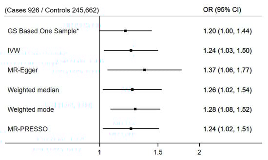 - Burgess, S.; Davey Smith, G.; Davies, N.M.; Dudbridge, F.; Gill, D.; Glymour, M.M.; Hartwig, F.P.; Holmes, M.V.; Minelli, C.; Relton, C.L.; et al. Guidelines for performing Mendelian randomization investigations. Wellcome Open Res. 2020, 4, 186. [Google Scholar] [CrossRef]
