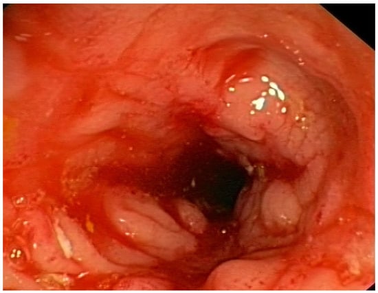 Typical perianal complications were observed in 15 patients. In 20 (68.97%) Crohn’s patients, extraintestinal manifestations (EIMs) of Crohn’s disease, mainly osteoarticular complications, were present (Table 6). They were mainly related to bones and joints (peripheral arthralgia, spondylalgia, ankylosing spondylitis) and were present in fifteen patients (51.7%), but they also included conjunctivitis in one patient (3.4%), skin manifestations in three patients (10.3%), aphthous ulcers in the oral cavity in four patients (13.8%), hepatic complications (hepatic steatosis in four patients, 13.8%), biliary tract complications (PSC—primary sclerosing cholangitis in two patients, 6.9%), nephrolithiasis in one patient (3.4%), and cholelithiasis in three patients (10.3%).