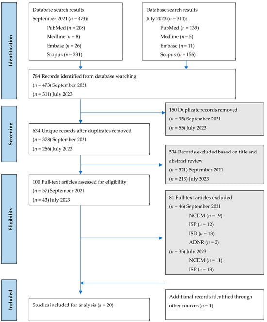 - Page, M.J.; McKenzie, J.E.; Bossuyt, P.M.; Boutron, I.; Hoffmann, T.C.; Mulrow, C.D.; Shamseer, L.; Tetzlaff, J.M.; Akl, E.A.; Brennan, S.E.; et al. The PRISMA 2020 statement: An updated guideline for reporting systematic reviews. BMJ 2021, 372, n71. [Google Scholar] [CrossRef]