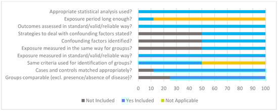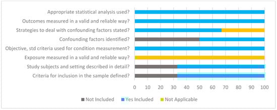 - Moola, S.; Munn, Z.; Tufanaru, C.; Aromataris, E.; Sears, K.; Sfetcu, R.; Currie, M.; Qureshi, R.; Mattis, P.; Lisy, K.; et al. Chapter 7: Systematic reviews of etiology and risk. In JBI Manual for Evidence Synthethis; The Joanna Briggs Institute: Adelaide, Australia, 2017. [Google Scholar]