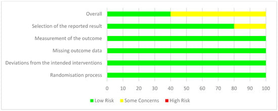 - Sterne, J.A.C.; Savovic, J.; Page, M.J.; Elbers, R.G.; Blencowe, N.S.; Boutron, I.; Cates, C.J.; Cheng, H.Y.; Corbett, M.S.; Eldridge, S.M.; et al. RoB 2: A revised tool for assessing risk of bias in randomised trials. BMJ 2019, 366, l4898. [Google Scholar] [CrossRef] [PubMed]