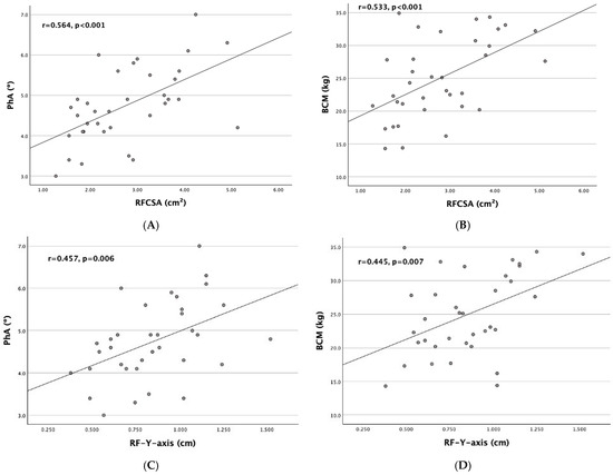 | RF-Y-axis (cm) | −0.386 | 0.022 * | 0.599 | <0.001 *** | 0.602 | <0.001 *** |