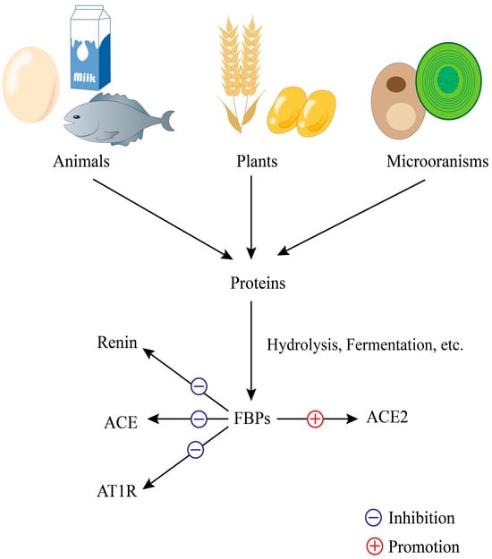 The global rise of hypertension demands innovative solutions. Food-derived antihypertensive peptides hold immense potential for blood pressure regulation and cardiovascular health promotion. These peptides, sourced from plants, animals, and microorganisms, demonstrate diverse interactions with the RAS, including ACE inhibition, renin inhibition, ACE2 activation, and the AT1R blockade, among other pathways. Their clinical relevance lies in providing safer and more natural alternatives for antihypertensive therapy.