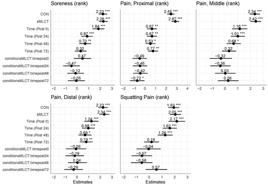 | Soreness (rank) | condition | 0.00 | 1.00 |