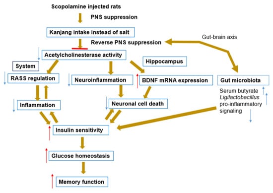 - Park, S.; Wu, X. Modulation of the gut microbiota in memory impairment and Alzheimer’s disease via the inhibition of the parasympathetic nervous system. Int. J. Mol. Sci. 2022, 23, 13574. [Google Scholar] [CrossRef]