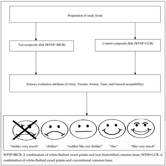 - Buzigi, E.; Pillay, K.; Siwela, M.; Mkhwanazi, B.; Ngidi, M.; Ssozi, J.; Mahinda, B.M.; Isingoma, E.B. Lactating Mothers’ Perceptions and Sensory Acceptability of a Provitamin A Carotenoid–Iron-Rich Composite Dish Prepared from Iron-Biofortified Common Bean and Orange-Fleshed Sweet Potato in Rural Western Uganda. Food Sci. Nutr. 2024, 12, 3949–3963. [Google Scholar] [CrossRef] [PubMed]