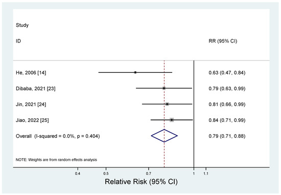 - Higgins, J.P.; Thompson, S.G.; Deeks, J.J.; Altman, D.G. Measuring inconsistency in meta-analyses. BMJ 2003, 327, 557–560. [Google Scholar] [CrossRef]