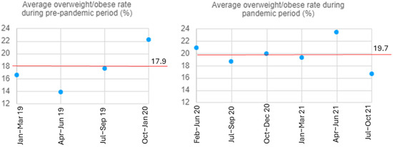 Average overweight/obese rate during pre-pandemic and pandemic periods.