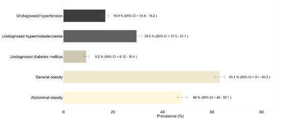 - Khalifa, A.; Alanazi, M.; Alotaibi, A.; Aldaham, D.; Alshalan, A.; Qabaja, A.; Algarni, A.; Alrata, L.; Alkaltham, F.; Aburaba, A.; et al. Obesity and associating factors: A cross-sectional study in Riyadh, Saudi Arabia. Int. J. Med. Dev. Ctries. 2020, 4, 417–422. [Google Scholar] [CrossRef]