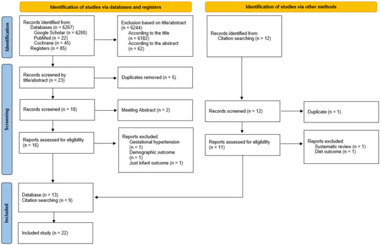- Zhang, Y.; Xia, M.; Weng, S.; Wang, C.; Yuan, P.; Tang, S. Effect of Mediterranean Diet for Pregnant Women: A Meta-Analysis of Randomized Controlled Trials. J. Matern.-Fetal Neonatal Med. 2022, 35, 4824–4829. [Google Scholar] [CrossRef]