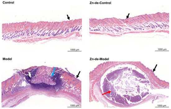 The following supporting information can be downloaded at: https://www.mdpi.com/article/10.3390/nu17111803/s1, Figure S1: Serum zinc levels after 14 days of a Zn-deficient diet; Figure S2: Scoring criteria for lesion elevation.