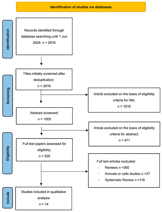 Finally, 14 clinical trials involving patients, published between 2010 and 2023, met the eligibility criteria and were included in our review.
