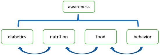Intervention programs regarding food and nutrition education and diabetic prevention largely focus on changing student behavior [7,44], but their effect may not be immediately apparent [45], especially for those who have overweight conditions [11]. This study proposes that changing the awareness of the relationship between food, nutrition, behavior, and illness can also be a viable goal. These connections of knowledge may change behavior in the long run.