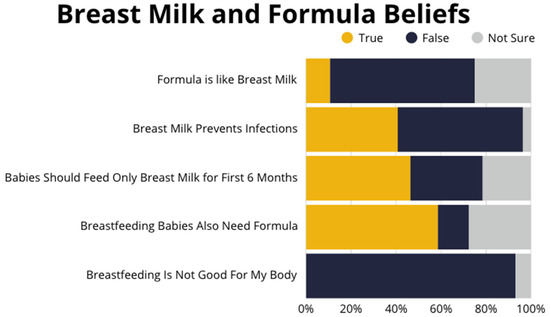 Knowledge gaps on the benefits of breastfeeding compared to formula-feeding exist among this group despite known benefits of breast milk feeding compared to formula-feeding [1]. About one-third of participants were unaware or unsure of how breast milk differs from formula. Receiving formula was the foremost reason for breastfeeding cessation. This is similarly reported in other studies among culturally diverse ethnicities [22,24]. A similar breastfeeding benefit knowledge gap was reported among Hispanic women in a qualitative study of WIC participants in Nevada. Hispanic women in the study perceived distribution of formula by the WIC program as an indication of WIC’s affirmation of formula use as an equally acceptable option to breastfeeding [32].
