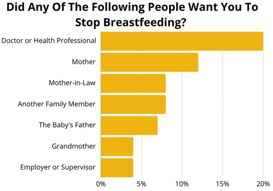 Survey responses to the question, “Did any of the following people want you to stop breastfeeding?” Frequencies indicate the percentage of participants who indicated “Yes”.