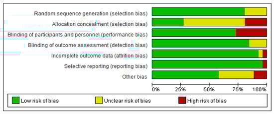 - Higgins, J.P.; Altman, D.G.; Gøtzsche, P.C.; Jüni, P.; Moher, D.; Oxman, A.D.; Savovic, J.; Schulz, K.F.; Weeks, L.; Sterne, J.A. The Cochrane Collaboration’s tool for assessing risk of bias in randomised trials. BMJ 2011, 343, d5928. [Google Scholar] [CrossRef] [PubMed]
