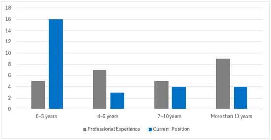 Comparison of the participants’ years of overall professional experience vs. the number of years in the current position.