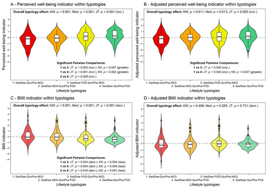 3.4. Perceived Quality and BMI Indicators and Analysis Within the Lifestyle Typologies