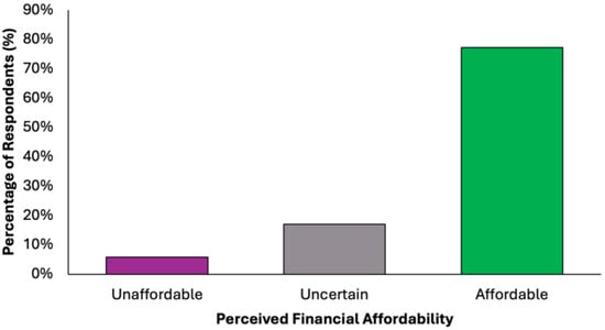 The majority of participants (N = 305, 77.2%) perceived the proposed diet as financially accessible, while a small proportion (N = 23, 5.8%) considered it unaffordable (Figure 8). A notable minority (N = 67, 17.0%) were undecided, suggesting variability in cost perception based on individual financial circumstances. These findings support the potential for broad implementation of the dietary model across diverse socioeconomic groups.