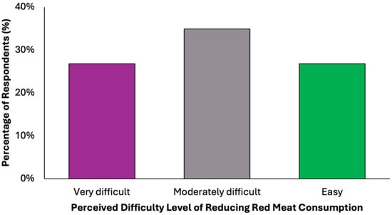 In evaluating the acceptability of the proposed dietary model, a key limiting factor appears to be participants’ readiness to eliminate red meat, a well-established dietary risk factor for colorectal cancer (Figure 9). Only 38.2% (N = 151) of respondents stated they would not find it difficult to give up red meat. In contrast, the remaining 61.8% expressed varying degrees of resistance: 34.9% (N = 138) reported partial difficulty, while 26.8% (N = 106) found the prospect clearly difficult. These findings reveal a notable level of reluctance toward one of the most impactful dietary modifications recommended for colorectal cancer prevention.