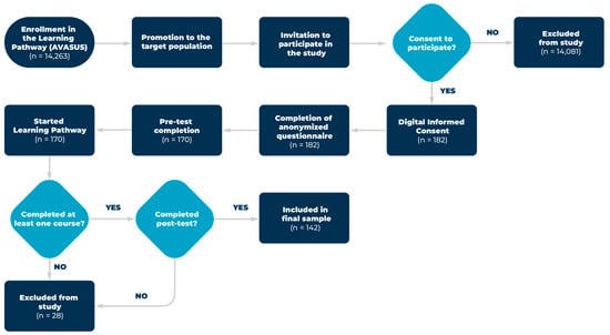 - Valentim, R.A.M.; de Oliveira, C.A.P.; Oliveira, E.S.G.; Ribeiro, E.L.; da Costa, S.M.; Morais, I.R.D.; Fernandes, F.R.D.S.; Caitano, A.R.; Gusmão, C.M.G.; Cunha-Oliveira, A.; et al. Virtual Learning Environment of the Brazilian Health System (AVASUS): Efficiency of Results, Impacts, and Contributions. Front. Med. 2022, 9, 896208. [Google Scholar] [CrossRef]